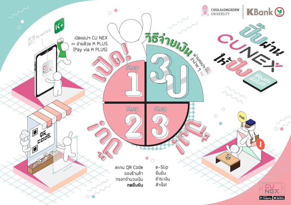 ⛳️หนึ่ง! เปิด – เปิดแอปฯ CU NEX >> จ่ายด้วย K PLUS (Pay via K PLUS)