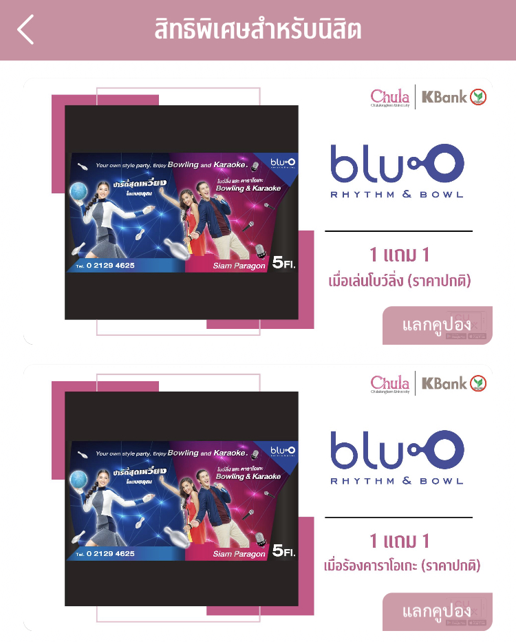 เค้าว่ากันว่าการร้องเพลงช่วยลดความเครียดได้นะ โดยเฉพาะไปกันเป็นกลุ่ม ปลดปล่อยกันให้สุด เพิ่มความสนุกไปคูณสิบ NEXKY ขอแอบกระซิบว่า Blu-O🎤🎳 มีโปร คาราโอเกะ 1 แถม 1 และโบว์ลิ่ง 1 แถม 1 สามารถกดรับได้เลยในแอปฯ CU NEX ในฟีเจอร์ ‘สิทธิพิเศษสำหรับนิสิตจุฬา’ ดีอย่างนี้พลาดไม่ได้แล้วนะ!