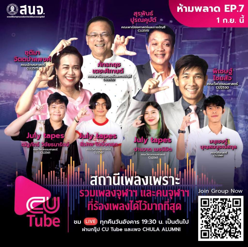 พบกับมิวสิกวาไรตี้ 🔊 ที่รวบรวมเพลงจุฬาฯ และคนจุฬาฯ ที่ขับร้องเพลงได้อย่างสุดไพเราะมาไว้มากที่สุดที่ “CU Tube” สถานีเพลงโดยสมาคมนิสิตเก่าจุฬาลงกรณ์มหาวิทยาลัย ในพระบรมราชูปถัมภ์ (สนจ.) ที่จะมาเสิร์ฟความบันเทิงผ่านเสียงเพลง และเรื่องราวดี ๆ ของเหล่านิสิตเก่าจุฬาฯ หลากหลายวงการ ที่มาร่วมร้องเพลง เล่นดนตรี และแชร์แรงบันดาลใจผ่านแพลตฟอร์มออนไลน์ 🎇