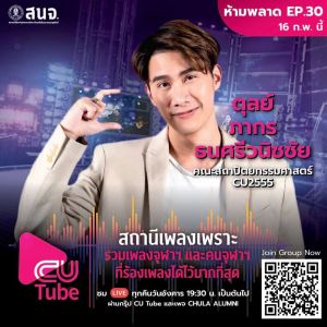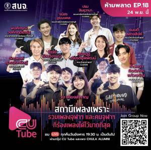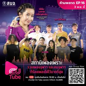 กลับมาอีกครั้งกับ Ep.6 ของ CU Tube สถานีเพลงเพราะของชาวจุฬาฯ นำโดย มิ้น เดอะ ไดได-ธิติรัตน์ โรจน์แสงรัตน์, เก้ง Lynx-เขมวัฒน์ เริงธรรม และ ครูกรีน AF7-นิธิวัชร์ ตันติภัสร์สิริ