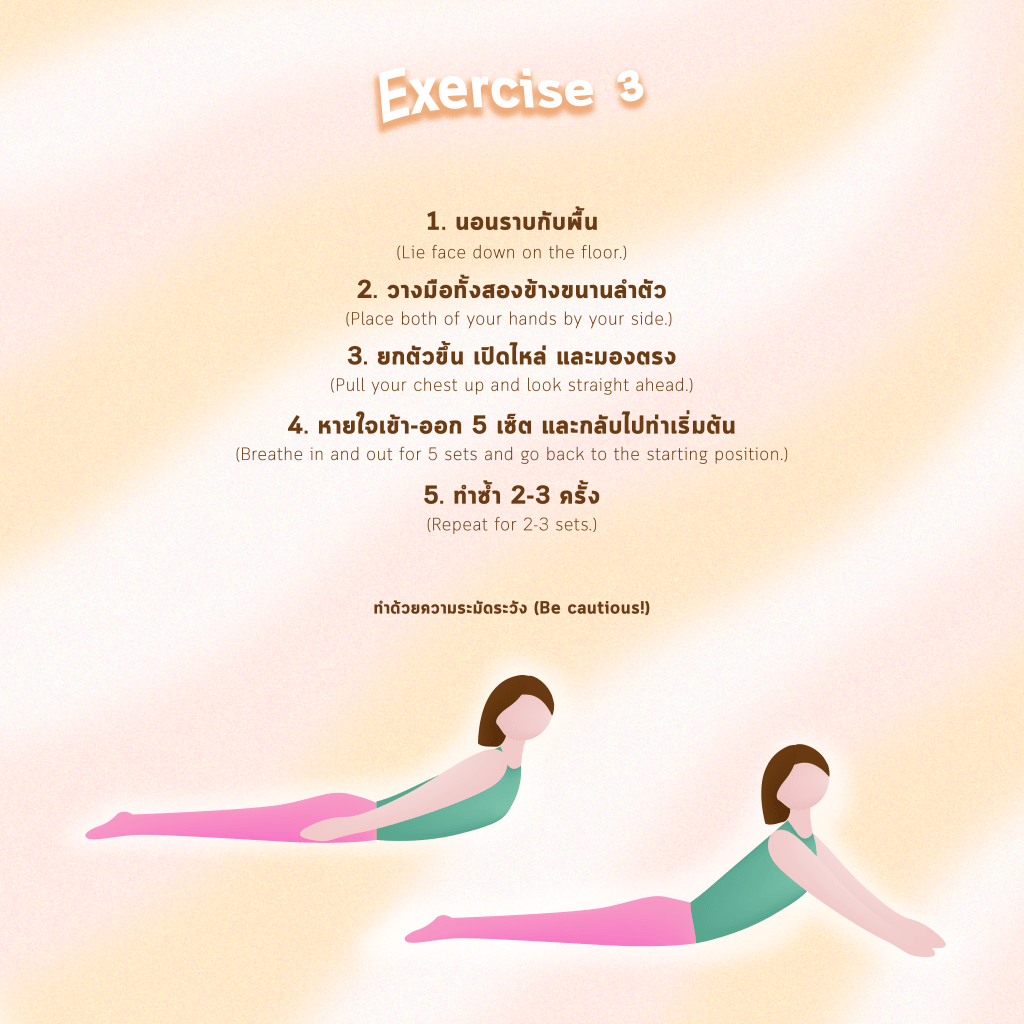 - Breathe in and out for 5 sets and go back to the starting position.