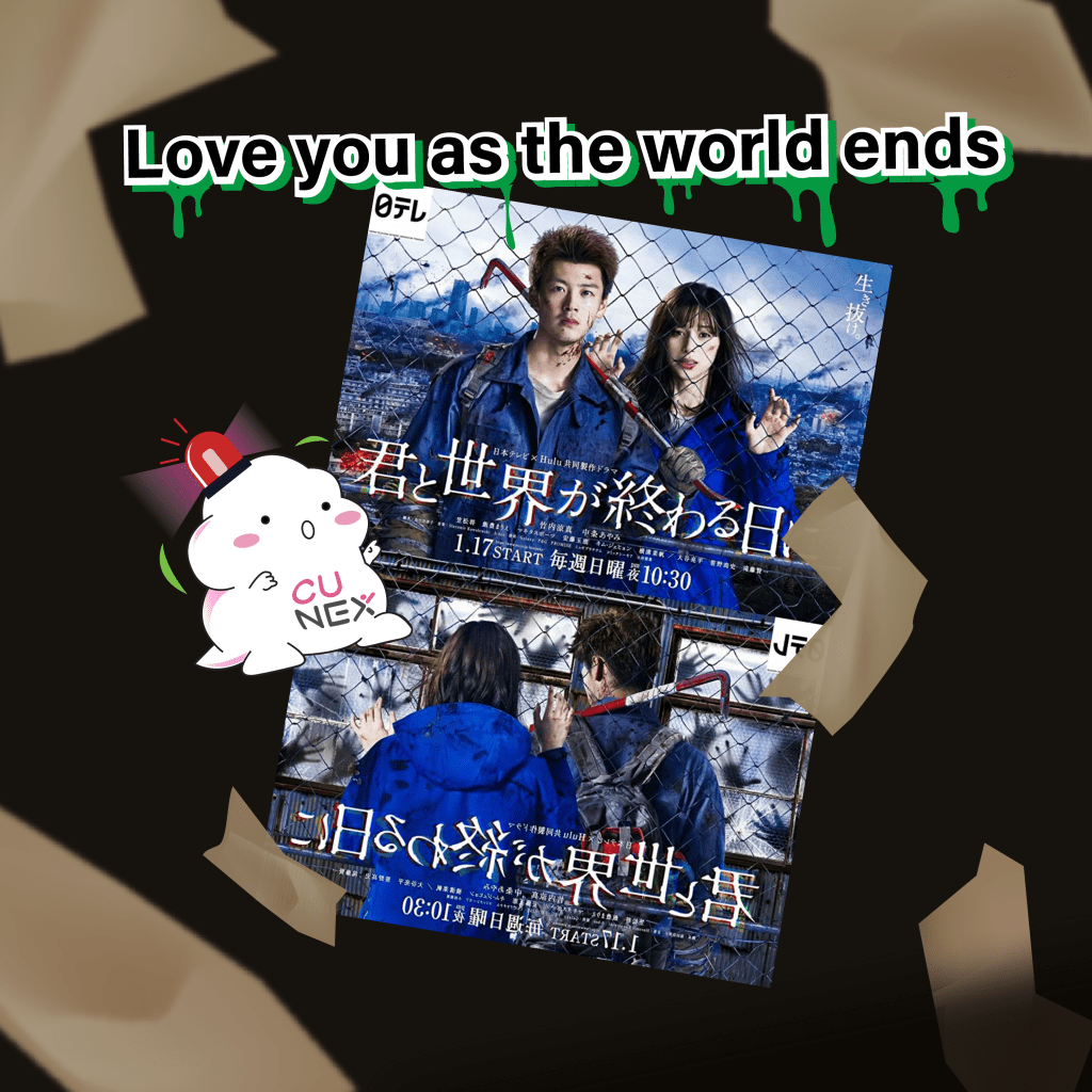 แอบข้ามมาฝั่งญี่ปุ่นกันบ้าง กับเรื่อง Love you as the world ends หนังแนวซอมบี้ติดอันดับ 3 ใน Netflix ซึ่งเป็นเรื่องราวของมามิยะ หนุ่มซ่อมรถที่พึ่งกลับมาจากทำงานแล้วพบว่าเมืองที่เขาอาศัยอยู่เป็นเมืองร้าง อีกทั้งยังมีซอมบี้กระจายอยู่เต็มเมือง และแฟนสาวของเขายังหายตัวไปไร้ร่องรอย จึงเกิดเป็นภารกิจฝ่าฝูงซอมบี้ตามหาแฟนสาว!