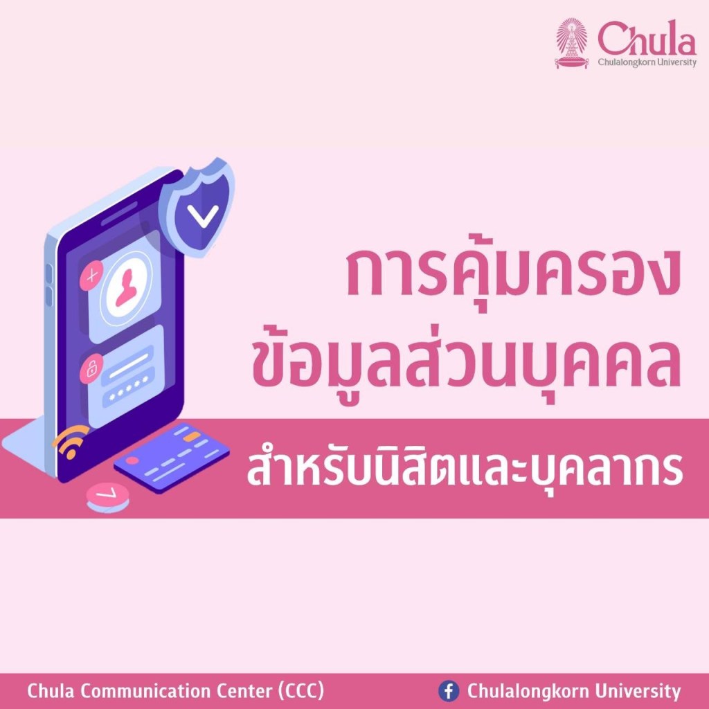 จุฬาลงกรณ์มหาวิทยาลัยเห็นความสำคัญของพระราชบัญญัติคุ้มครองข้อมูลส่วนบุคคล พ.ศ. 2562 หรือกฎหมาย PDPA (Personal Data Protection Act) ที่จะเริ่มบังคับใช้เต็มรูปแบบในวันที่ 1 มิถุนายน 2565 ซึ่งจะให้ความคุ้มครองข้อมูลส่วนบุคคล เช่น ชื่อ ที่อยู่ เบอร์โทรศัพท์ อีเมล หมายเลขบัตรประชาชน รวมไปถึงข้อมูลที่มีความอ่อนไหว เช่น เชื้อชาติ ศาสนา พฤติกรรมทางเพศ ข้อมูลทางสุขภาพ ฯลฯ ซึ่งข้อมูลเหล่านี้สามารถระบุถึงตัวเจ้าของข้อมูลนั้นได้ อาจเป็นได้ทั้งข้อมูลในรูปแบบเอกสาร กระดาษ หนังสือ หรือจัดเก็บในรูปแบบอิเล็กทรอนิกส์ก็ได้