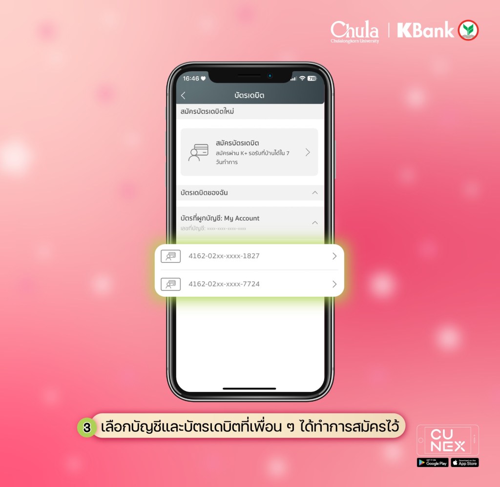 Step 2️⃣ : เลือกบัญชีและบัตรเดบิตที่เพื่อน ๆ ได้ทำการสมัครไว้