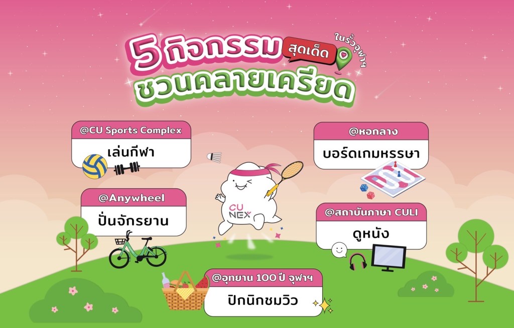 ช่วงนี้ใครมีความรู้สึกเครียด ๆ อยู่บ้าง😰 ร่างกายต้องการความสุขมาเติมเต็มด่วน! รู้รึเปล่าว่า ในมหาวิทยาลัยเราเอง ก็มีกิจกรรมมากมายที่ช่วยเติมพลังชีวิตให้แฮปปี้ได้ โดยไม่ต้องไปที่ไหนไกลเลย~ NEXKY เลยอยากมาแนะนำ กิจกรรมคลายเครียดในรั้วจุฬา ฯ ว่ามีอะไรเด็ด ๆ น่าทำกันบ้างง