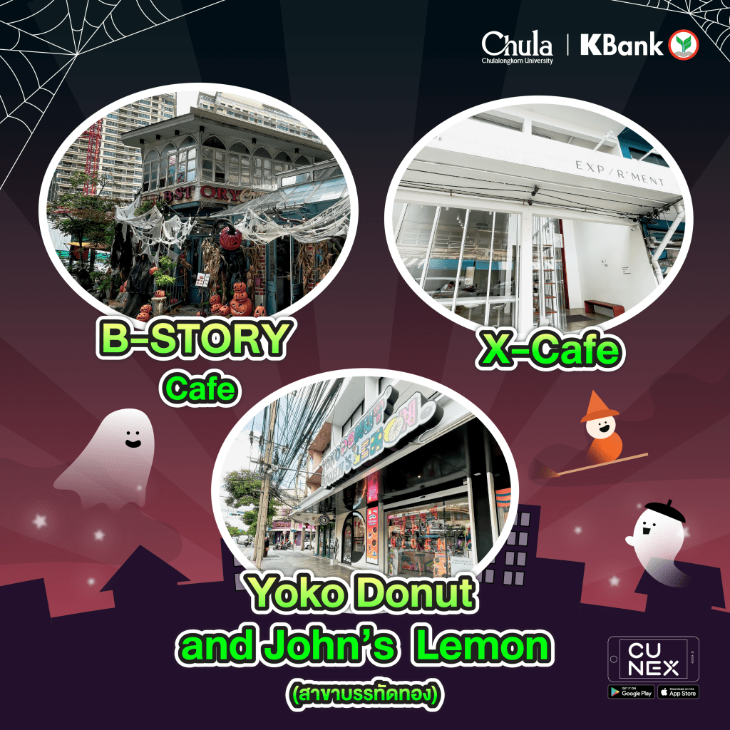 3️⃣ X-CAFE เป็นคาเฟ่ในมหาวิทยาลัย ตั้งอยู่ในโรงอาหารหอในจุฬาฯ ในคาเฟ่นอกจากมีเมนูเครื่องดื่มกับขนมมากมาย แล้วยังมีพร็อพที่คาดผมธีม Halloween ไว้ให้อีกด้วย สุดท้ายแต่ยังไม่ท้ายสุดในร้านมีบอร์ดเกมสนุกๆ ไว้ให้ไปเล่นกับเพื่อนๆ