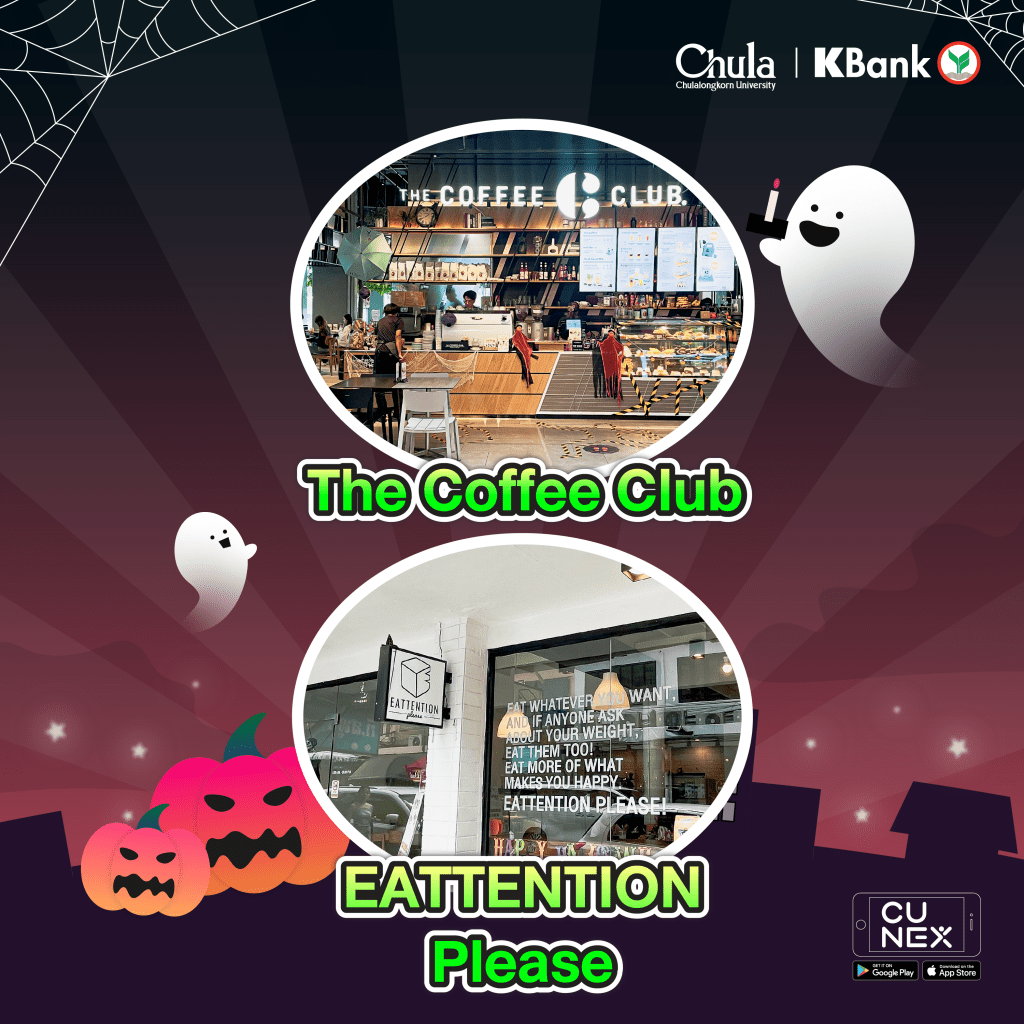 4️⃣ The Coffee Club สาขาสามย่าน ชั้น G เป็น cafe ที่มีทั้งเมนูหลากหลาย มีที่นั่งรองรับให้นั่งทํางาน มากไปกว่านี้ตลอดเทศกาล Halloween มีการตกแต่งร้านหลอนๆ ด้วย แล้วยังมีเมนูพิเศษ เช่น Lava Graveyard และ Spiderweb Thai Tea Coffee เป็นต้น 🪦