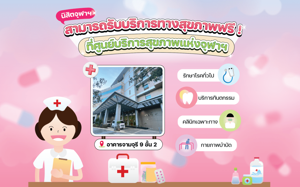 หากเพื่อน ๆ ไม่สบายก็สามารถติดต่อศูนย์บริการสุขภาพแห่งจุฬาฯ เพื่อรับสวัสดิการทางสุขภาพได้ฟรี แล้วก็อย่าลืมดูแลสุขภาพของตัวเองกันด้วยน้า 😷💗