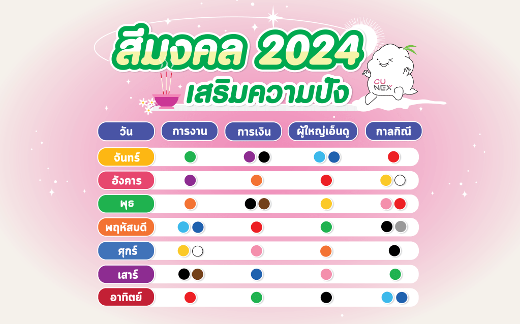 🙌🏻 Hello, Chula peeps! The New Year Festival is approaching. Do any of you believe in superstitions? Today, NEXKY introduced lucky colors 📅 that can be used for clothing and other items. Let’s find out your lucky color based on the day of the week you were born. 👉🏻