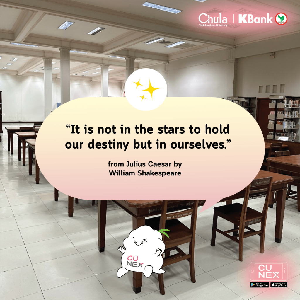 📚from Julius Caesar by William Shakespeare (คําอธิบาย: “ไม่มีสิ่งใดมากําหนดชีวิตเรา มีแต่เรากําหนดชีวิตด้วยตัวเราเอง”)