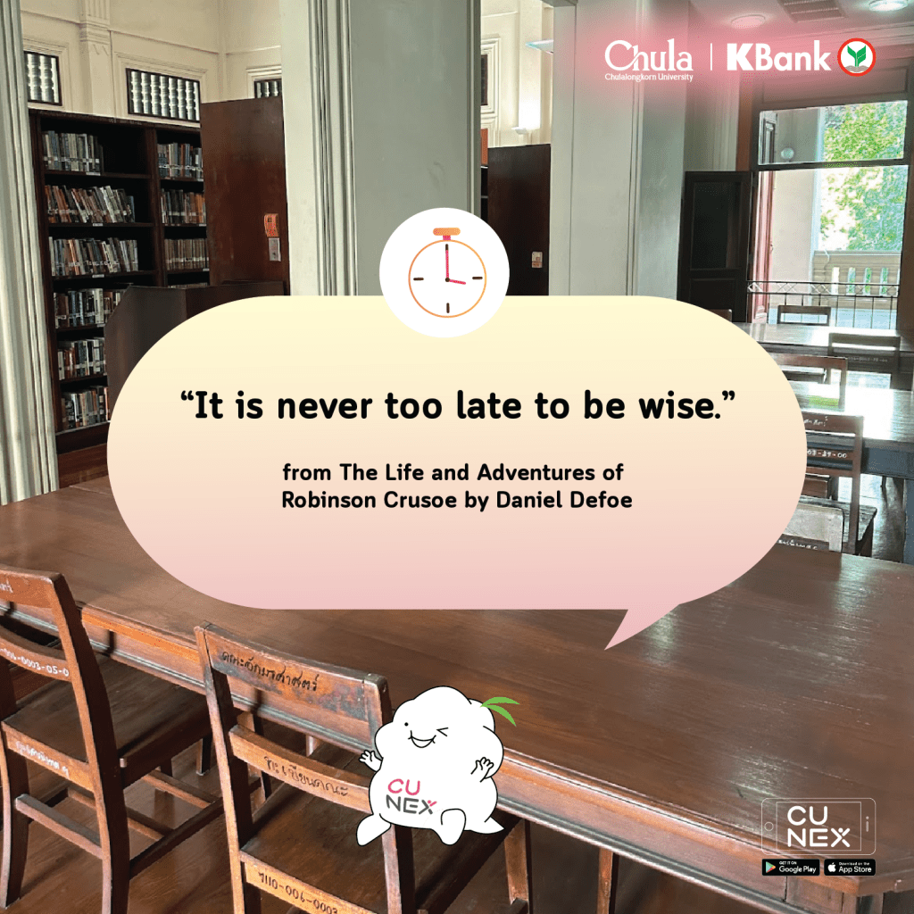 📚 The Life and Adventures of Robinson Crusoe by Daniel Defoe (คําอธิบาย: “ไม่สายเกินไปที่เราจะเรียนรู้สิ่งใดเพิ่มเติมหรือพัฒนาตนเองให้เก่งยิ่งขึ้น”)