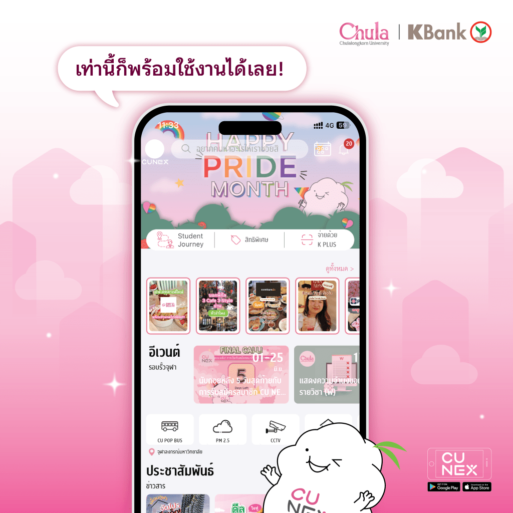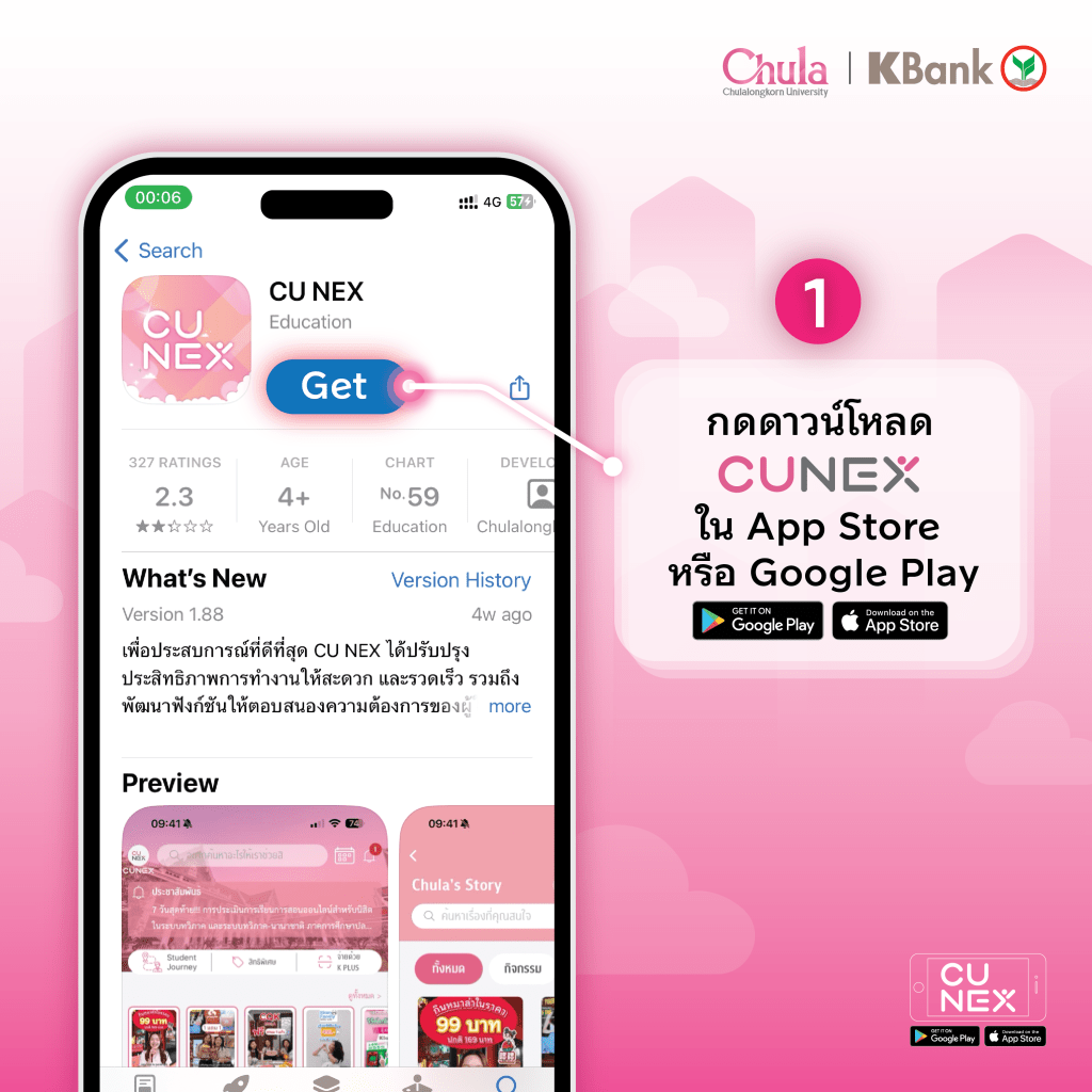 In just 3 easy steps the application is ready to use! You can pay your tuition fees, watch Chula Story, and book study rooms; all in CU NEX.