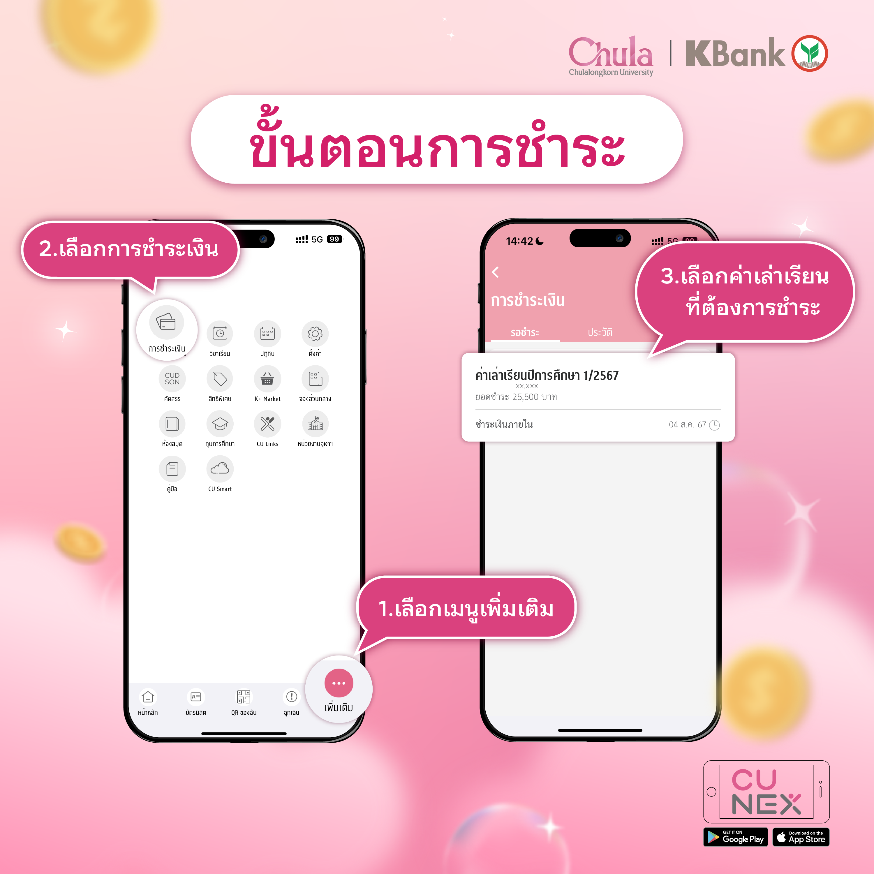 ถ้ามีพร้อมแล้วก็ไปกันต่อ! กับวิธีการชำระค่าเล่าเรียนผ่านแอป CU NEX