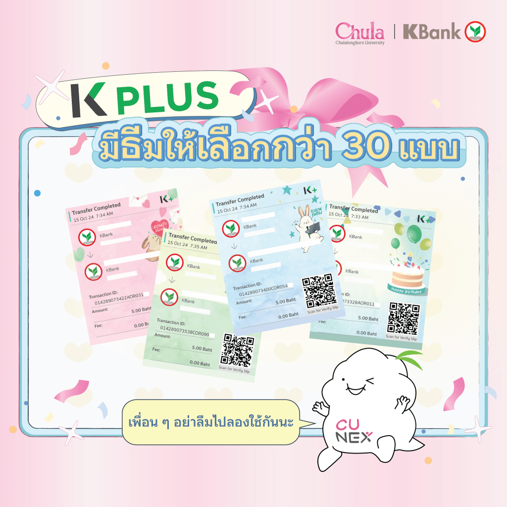 และสุดท้ายน้อง NEXKY ขอนำเสนอไอเดียโอนเงินเป็นของขวัญให้เพื่อนผ่าน K PLUS ตอนนี้ในแอปฯ K PLUS สามารถเปลี่ยนธีมสลิปโอนเงินได้นะ บอกเลยว่ามีลายให้เลือกเยอะมาก เหมาะกับการให้เป็นของขวัญสุด ๆ นำไปลงสตอรี่ไอจีแล้ว tag เพื่อนก็เริ่ดไปอีก น้อง NEXKY รับรองว่าต้องถูกใจเจ้าของวันเกิดแน่นอน