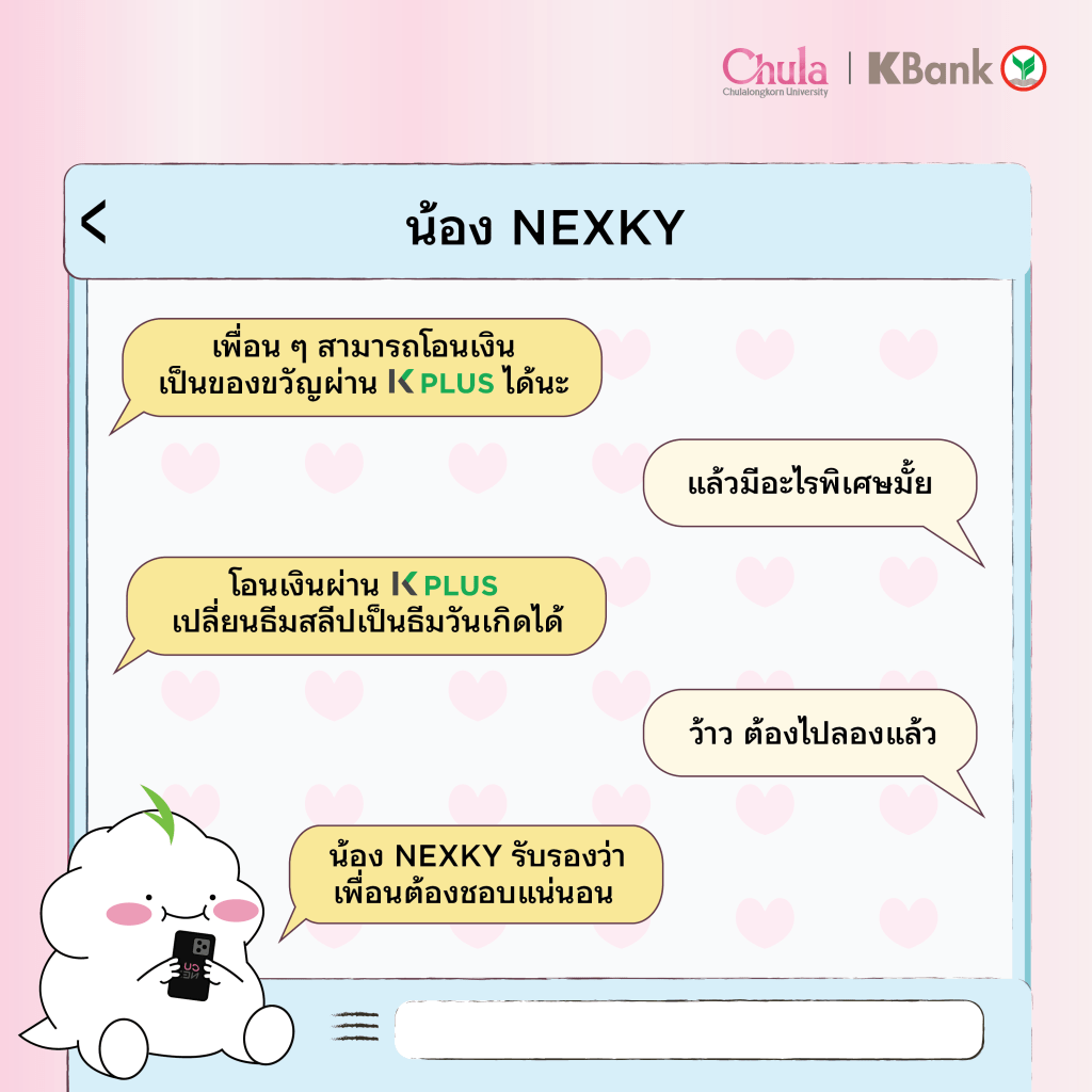 Lastly, NEXKY suggests sending money as a gift for your friend through K PLUS. The app now lets you customize the transfer slip with tons of cool designs. It’s perfect for gifting! You can even post it on your IG story and tag your friend. NEXKY is sure the birthday person will love it!