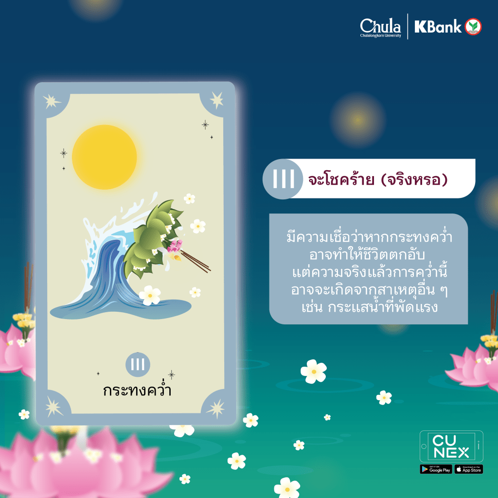 มีความเชื่อว่าหากกระทงคว่ำอาจทำให้ชีวิตตกอับ แต่ความจริงแล้วการคว่ำนี้อาจเกิดจากสาเหตุอื่น ๆ เช่น กระแสน้ำ