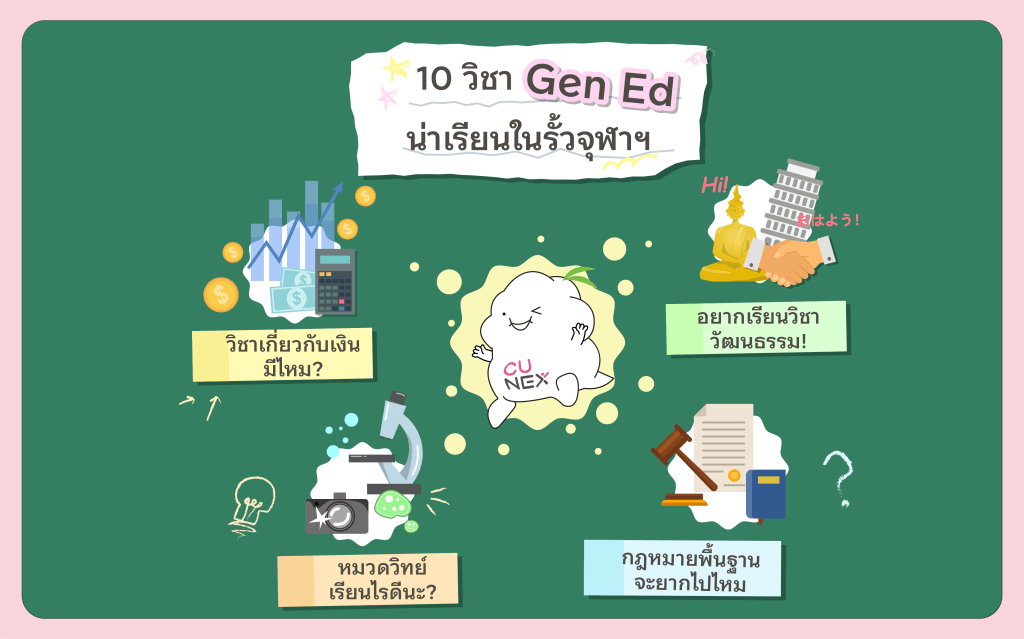 สวัสดีทุกคน วันนี้ NEXKY จะมารีวิววิชา GEN ED ที่เพื่อน ๆ ต่างรอคอยกัน แต่ NEXKY คงไม่สามารถรีวิวได้ทุกวิชา ดังนั้น NEXKY จึงคัด 10 วิชา GEN ED น่าเรียนในรั้วจุฬาฯ มาให้เพื่อนลองพิจารณาดูนะ แต่บอกก่อนว่า NEXKY รวบรวมข้อมูลจากผู้ที่เคยเรียนในรายวิชาดังกล่าวเพื่อน ๆ ดังนั้นโปรดใช้วิจารณญาณในการอ่านด้วยนะ