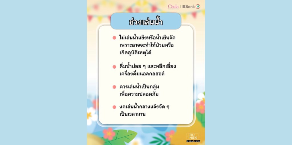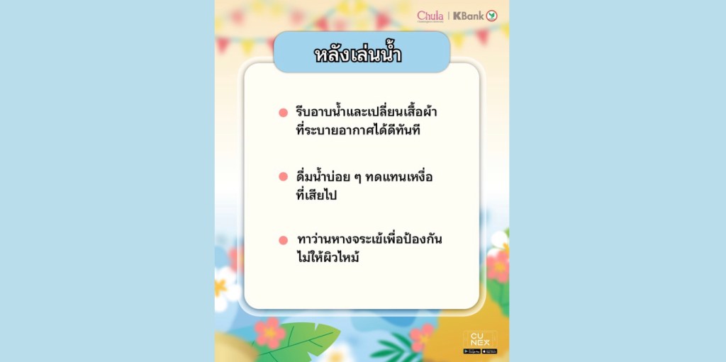 If you have a place to play in the water for this Songkran, enjoy it with fun! But don’t forget to consider preparation and play safely. 🤗 NEXKY has compiled tips on how to take care of yourself before, during, and after playing in the water.