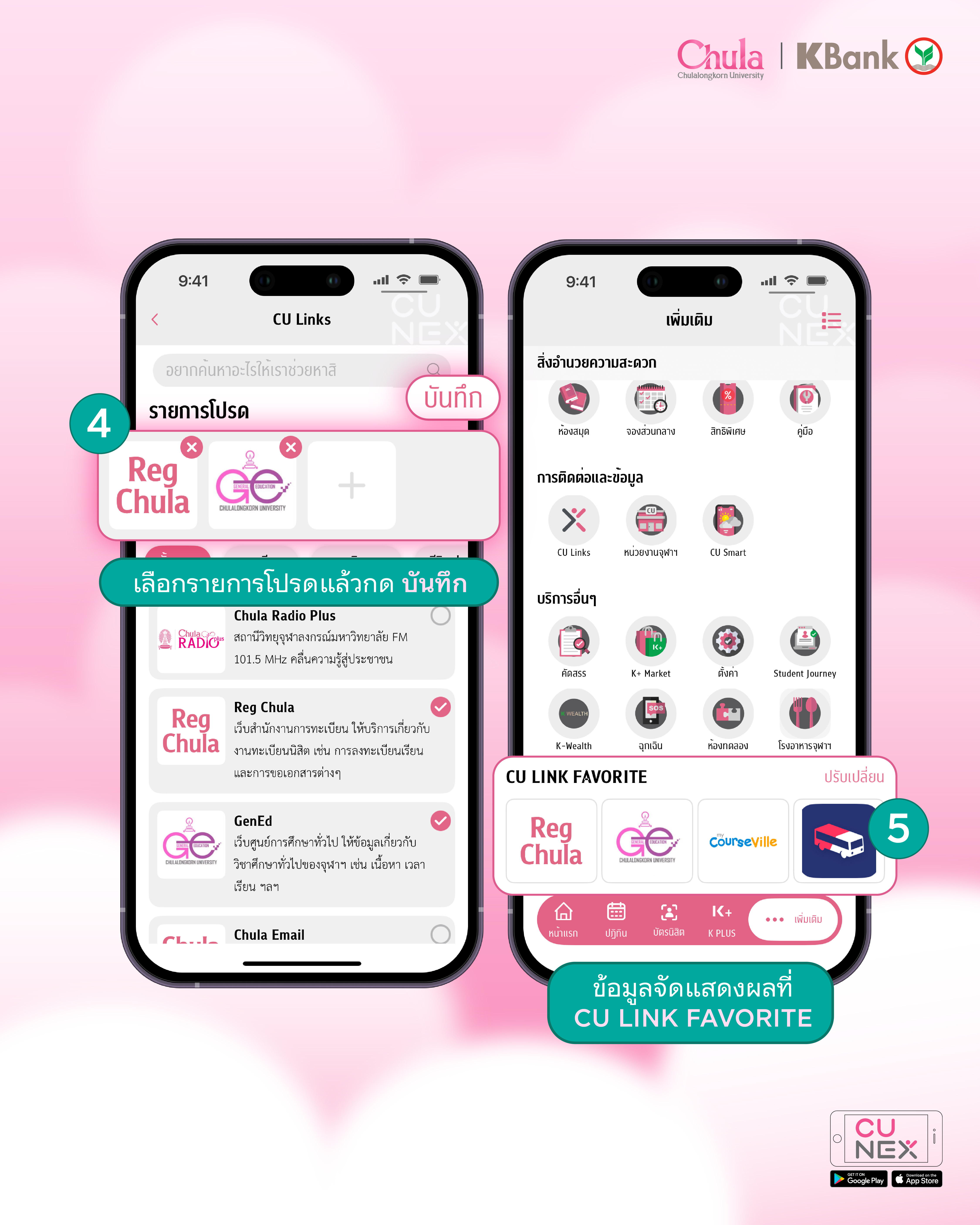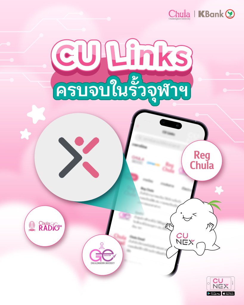 ✨👀CU Links ซ่อนอยู่ไหนใน CU NEX น้าาา เพื่อน ๆ รู้กันไหมว่าบนแอปพลิเคชัน CU NEX มีฟีเจอร์ลับซ่อนอยู่ นั่นก็คือ CU Links โดยฟีเจอร์นี้จะเป็นตัวช่วยในการรวบรวมข้อมูลการติดต่อของหน่วยงานทั้งภายในและภายนอกจุฬาฯ และลิงก์ที่เกี่ยวกับการใช้ชีวิตของนิสิตและบุคลากร เอาไว้ เพียงแค่กดคลิ๊กเดียวก็จะพาไปยังลิงก์ปลายทางที่ต้องการ มีทั้งหมวดหมู่