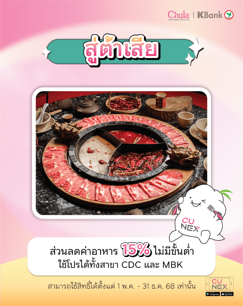 🥣นอกจากนี้ยังมีร้านอาหาร และดีลเด็ดอีกมากมายที่มีโปรกับแอปฯ CU NEX เพื่อน ๆ สามารถอัปเดตได้เรื่อย ๆ ที่ feature สิทธิพิเศษ ภายในแอปฯ CU NEX เพื่อไม่ให้พลาดโปรพิเศษสำหรับชาวจุฬาฯ น้าา โพสต์หน้า NEXKY จะมาป้ายยาอะไรอีก ต้องรอติดตามม ห้ามพลาดเลยหล่ะ!
