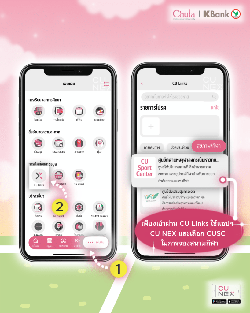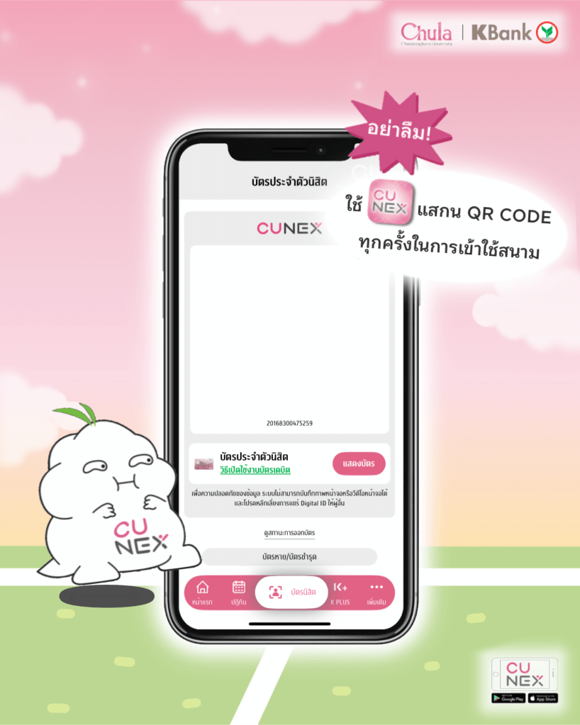 🩷อย่าลืมใช้ แอปฯ CU NEX ในการแสกน QR CODE บัตรนิสิต ในการเข้าใช้สนามกันน้าทุกคน