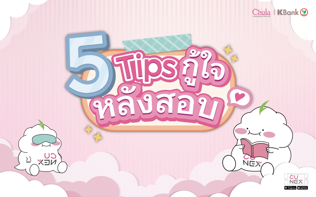 💗 วันนี้ CUNEX เลยรวมรวม 5 Tips กู้ใจหลังสอบ ที่จะช่วยให้หัวใจเราแข็งแรงขึ้นอีกครั้ง และพร้อมรับมือการทุกสถานการณ์ต่อไปกัน!