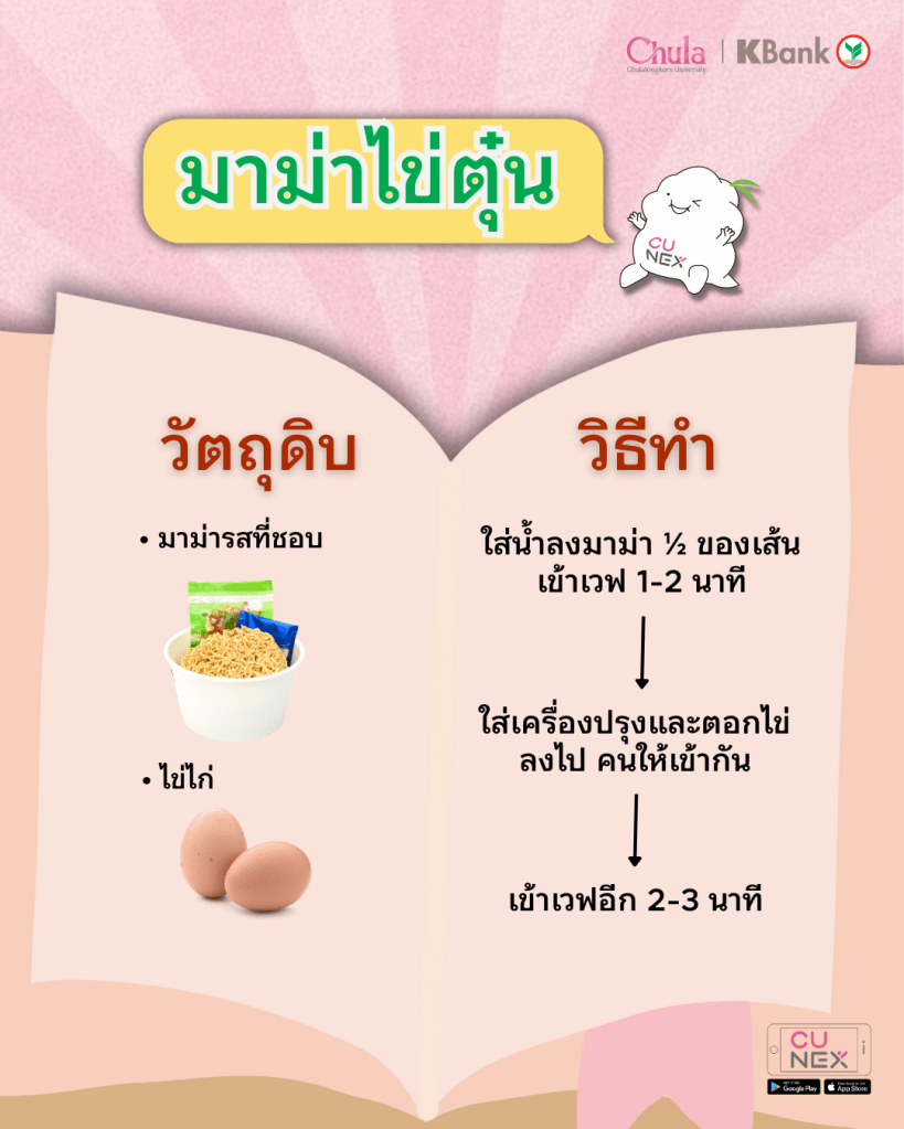 ✨ วัตถุดิบ: มาม่ารสที่ชอบ, ไข่ไก่