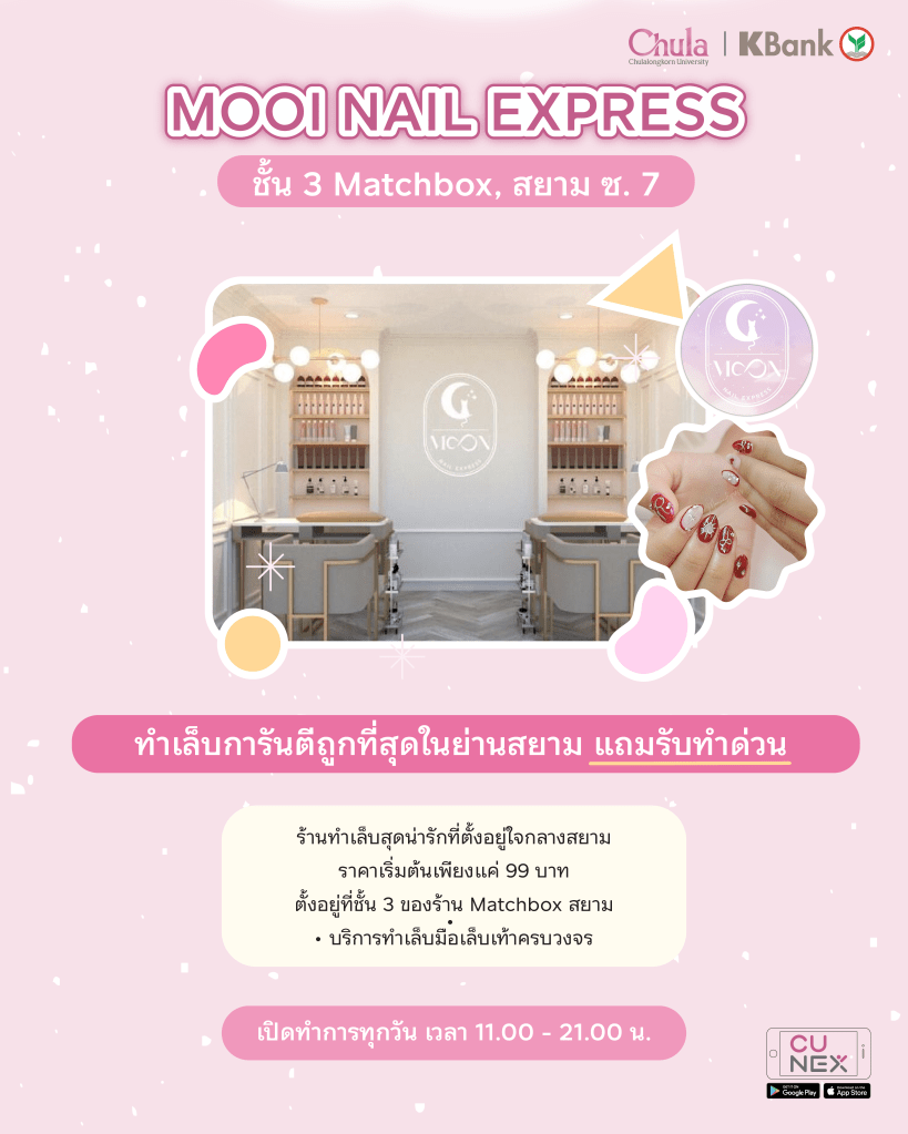 Have you tried any of these nail salons before? Or do you have another favorite spot near Chula? Share your recs with NEXKY! 😘 Don’t wait, open the CU nEX app and grab the exclusive privileges! 👋
