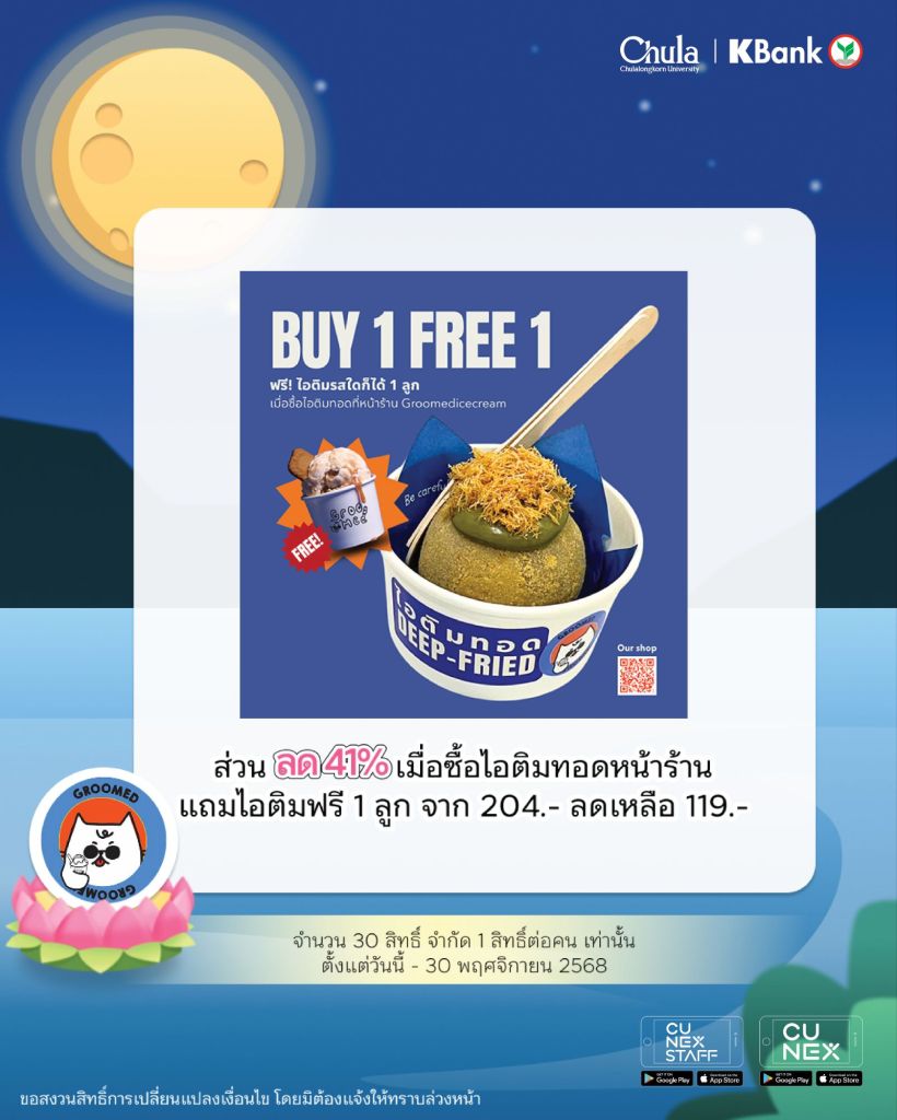 Get a 41% discount when ordering deep-fried ice cream in-store and get free a scoop of ice cream at the price of 119.- from the normal price of 204.-