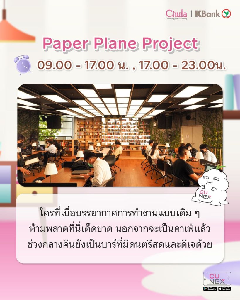 สายแฟ่ดแต่ก็อยากทำงานไปด้วยเหมาะมาก ๆ 📝 ใครที่เบื่อบรรยากาศการทำงานแบบเดิม ๆ ห้ามพลาดที่นี่เด็ดขาดด นอกจากจะเป็นคาเฟ่แล้ว 🪩 ช่วงกลางคืนยังเป็นบาร์ที่มีดนตรีสดและดีเจด้วยน้า นั่งยาว ๆ ได้สบาย 🥰