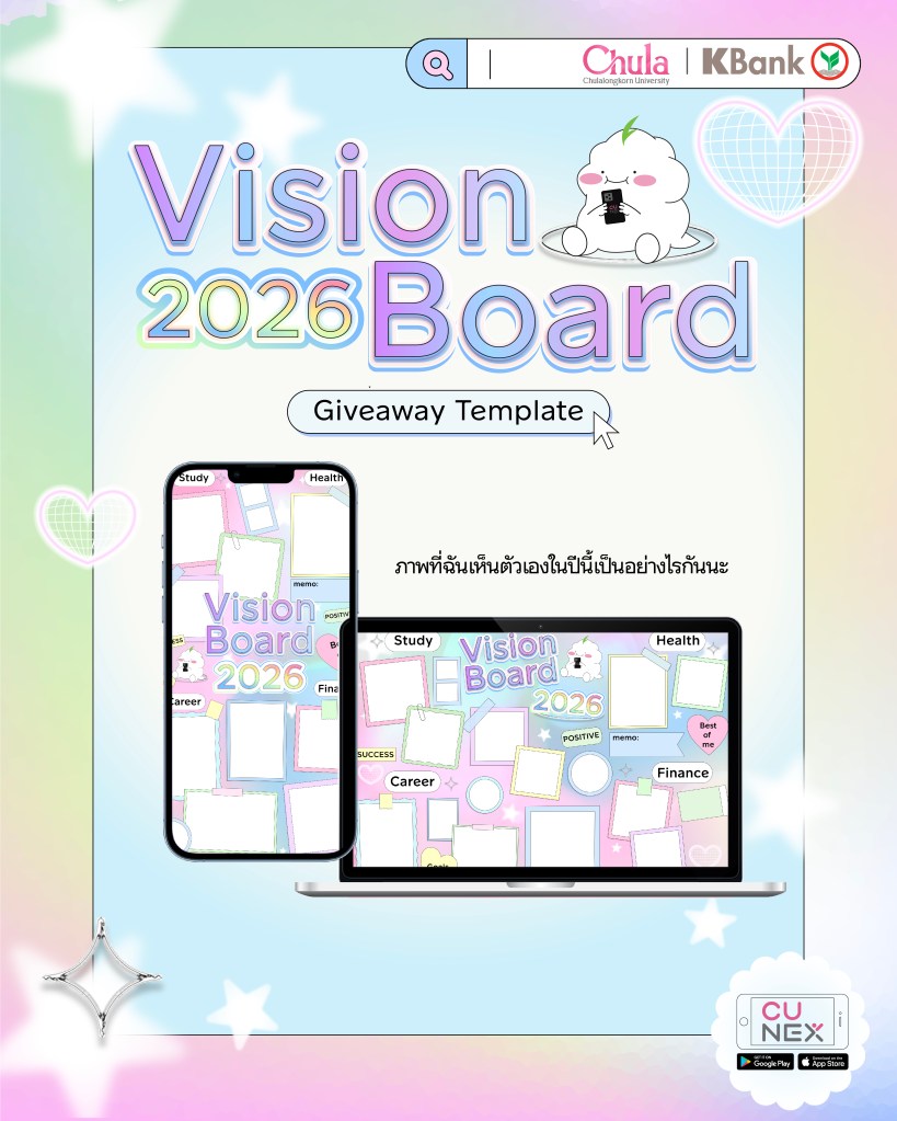 Ready to level up and become a better version of yourself this New Year?🪄 NEXKY is giving Chula students a Vision Board 2026 template 🖼️ to help you visualize your goals and design the life you want this year. It’s time to dream big, set clear goals, and turn your ambitions into reality. Let this Vision Board spark your motivation and push you toward achieving everything you’ve planned! 💪🔥