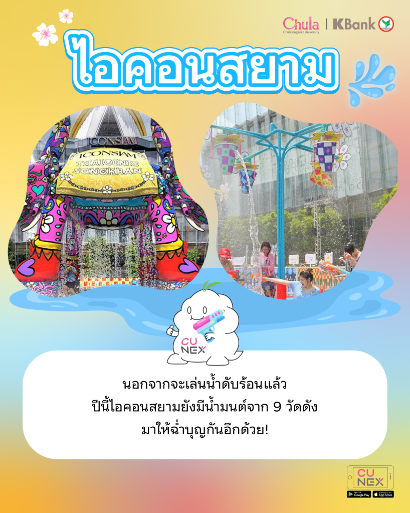 In addition to splashing water to cool off 🚿, ICONSIAM has brought holy water from 9 famous temples for a splash of blessings! 🎀😇